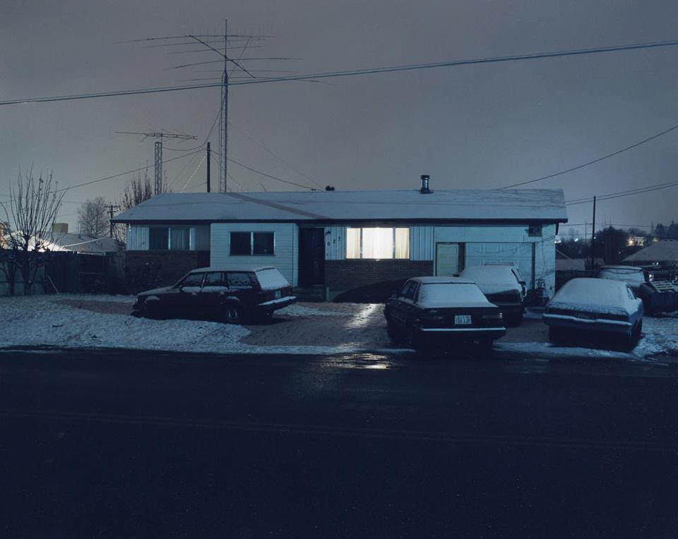Fotografie Hido odkrywają odosobnienie i anonimowość współczesnych przedmieść. Przerażająco oświetlone pokoje opuszczonych nagle domów wzmagają wrażenie samotności i straty.